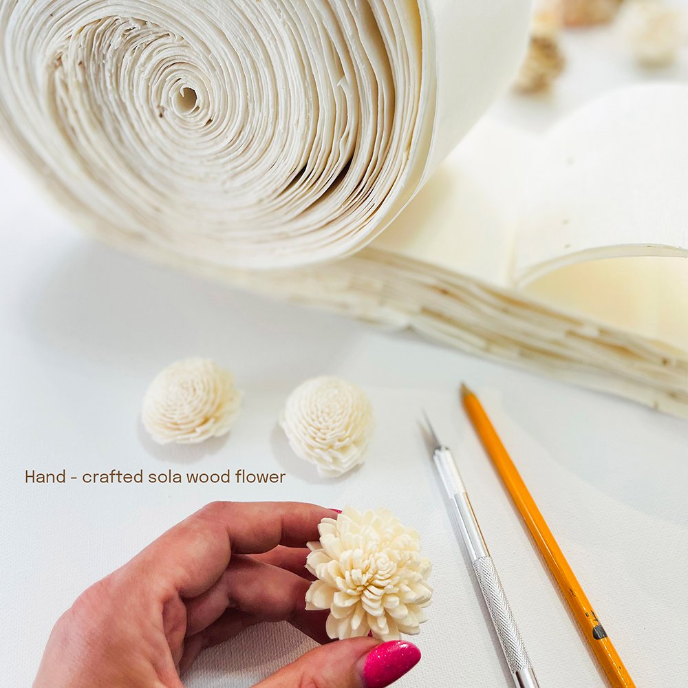 Papuošta stabilizuotomis Baltijos miškų samanomis, sola medžio žiedais ir jūros kriauklėmis.